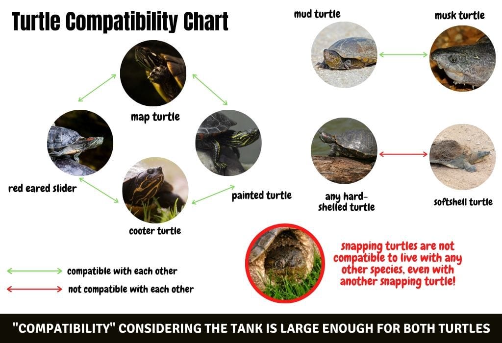 Again, putting two turtles of the same group offers other advantages. Like, the care sheet for both the turtles might be close. Also, the suitable tank and water temperature for the same types do not vary much.