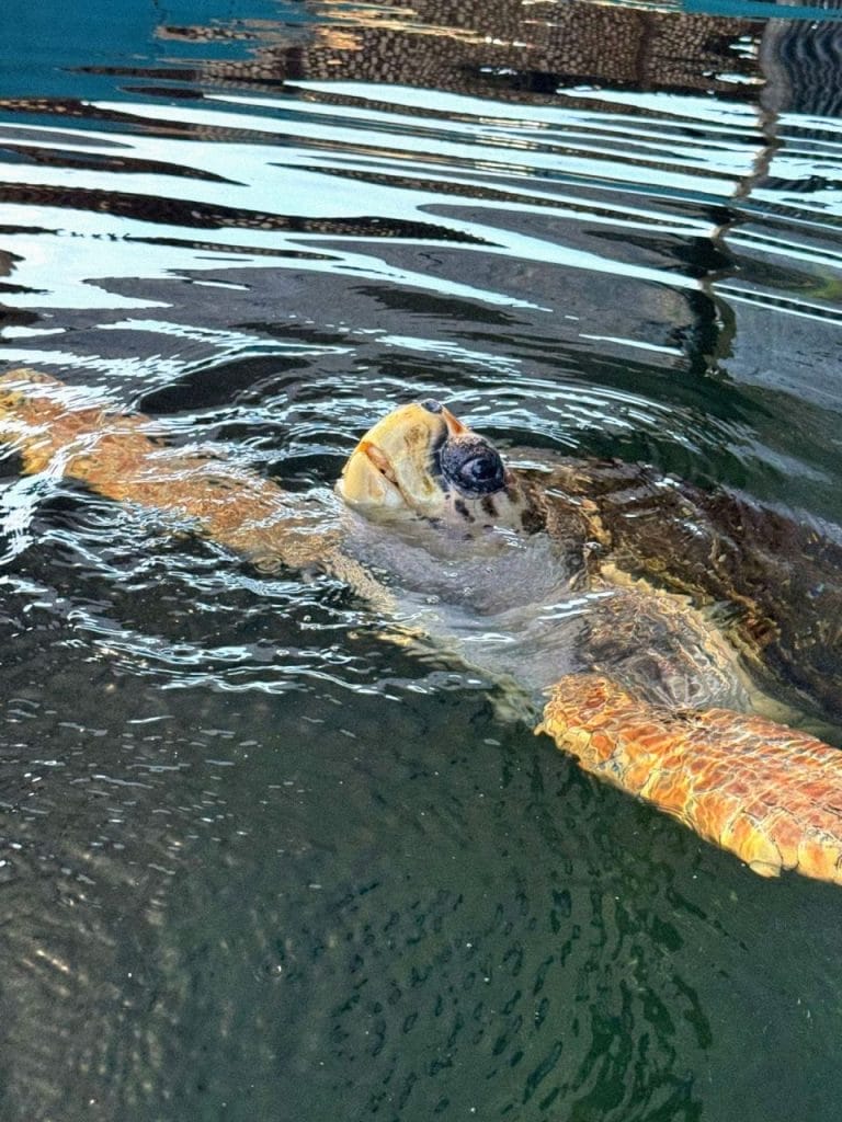 But with time, he got bolder. Started chasing, hunting, winning. He even began making shelters in the tank to rest in — classic loggerhead behavior. He got louder. More alert. More… alive.