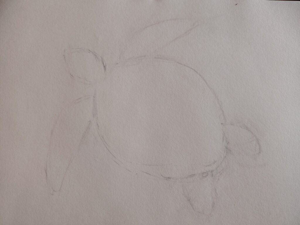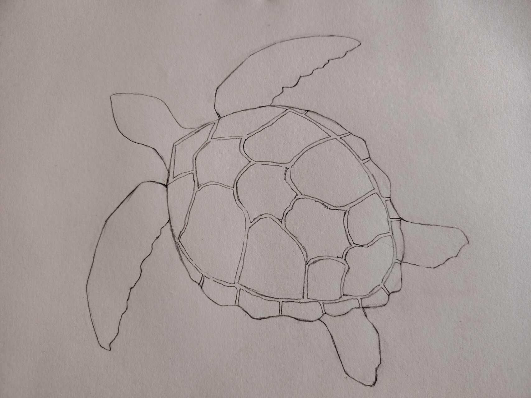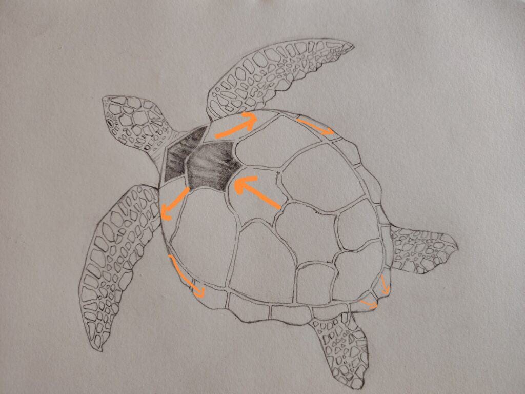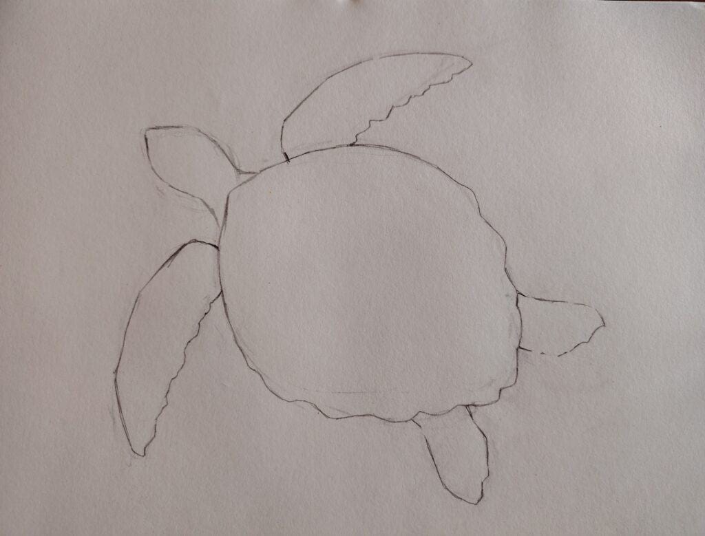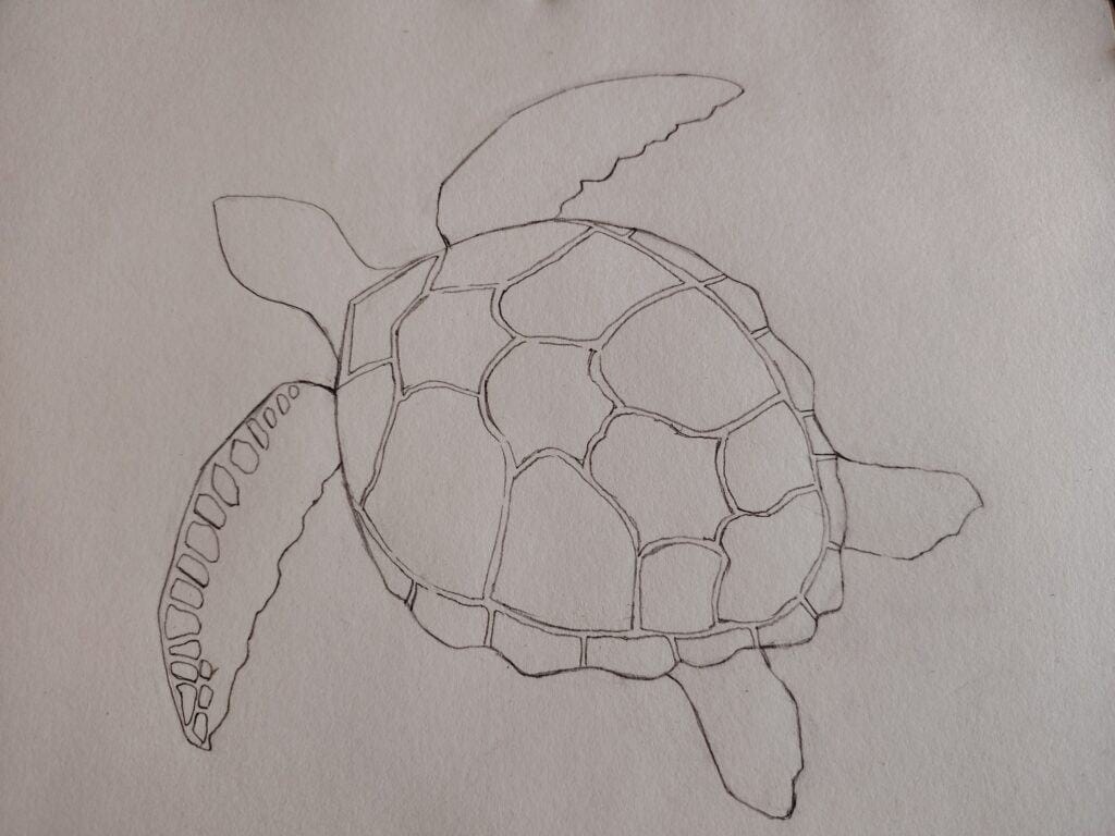 Lightly trace the turtle reference on the paper with an HB pencil.