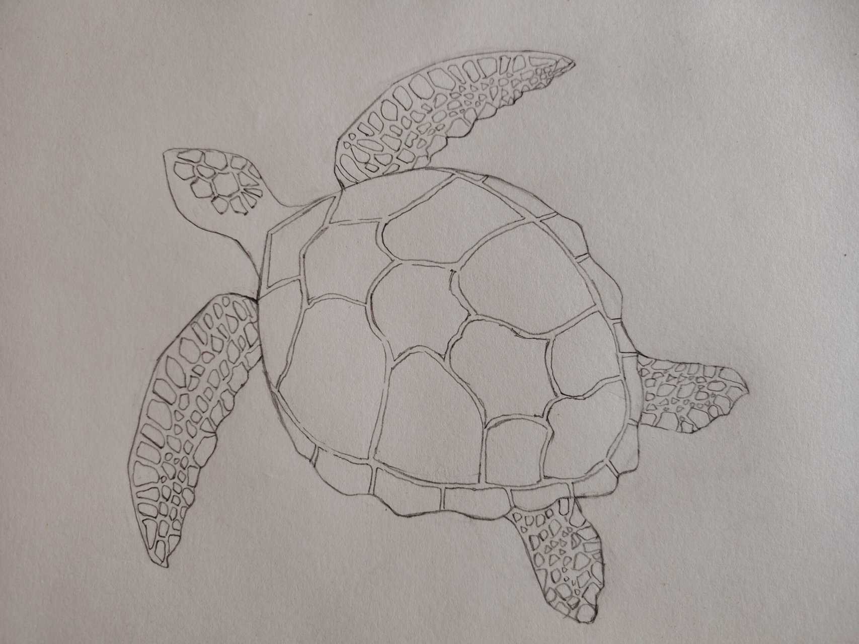 Begin by selecting a detailed turtle reference to serve as a visual guide.
