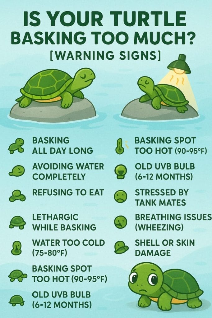 If your turtle’s basking all day, seems sluggish, or won’t eat, it’s vet time.