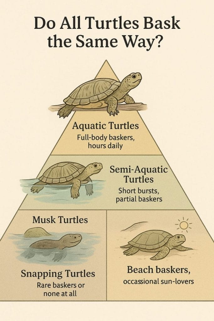Different turtles, different vibes. Aquatic turtles like sliders or painteds? They bask a lot.