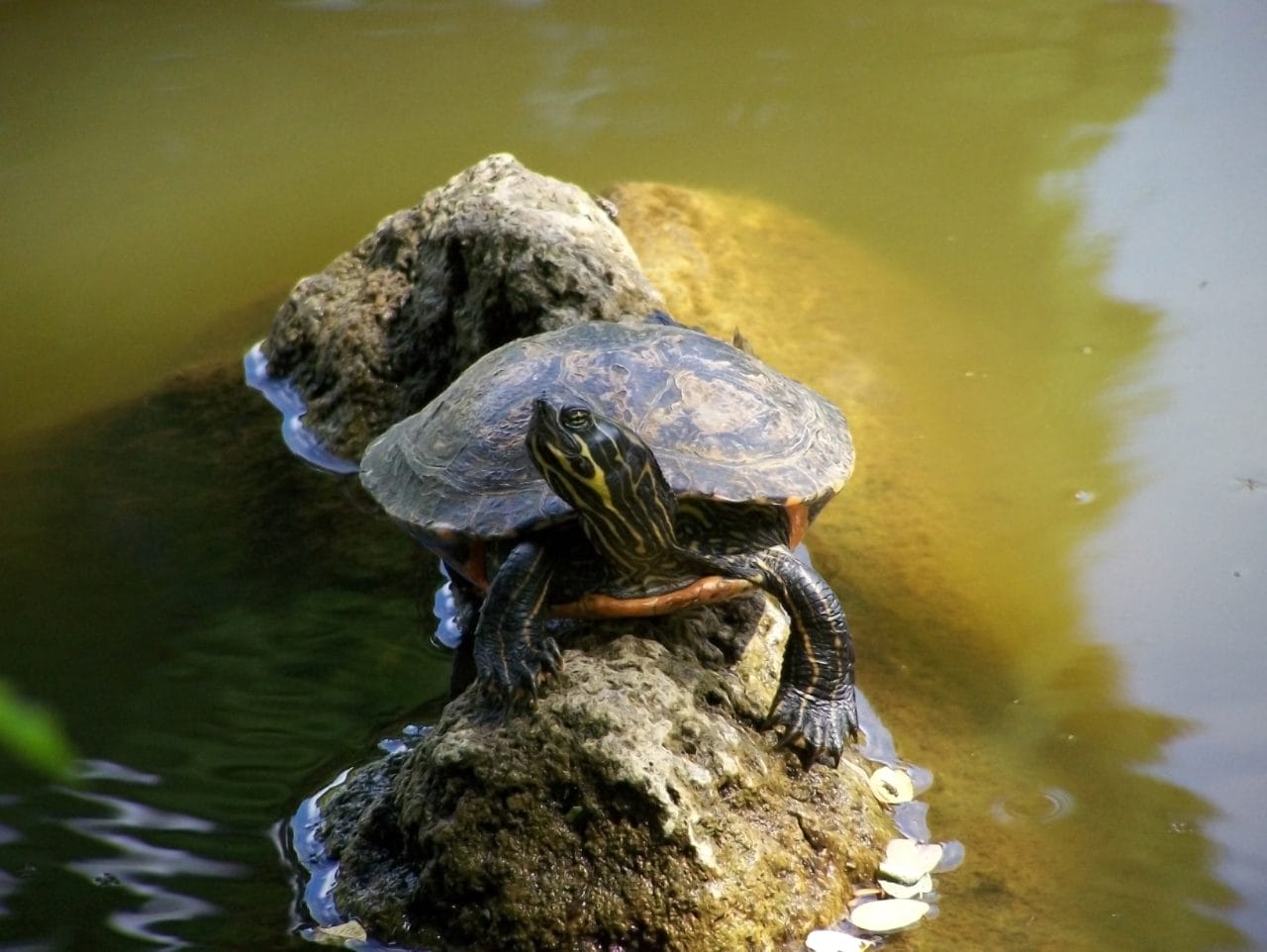 They prefer slow-moving freshwater habitats such as rivers, streams, lakes, and ponds. They need basking spots and areas with dense aquatic vegetation.