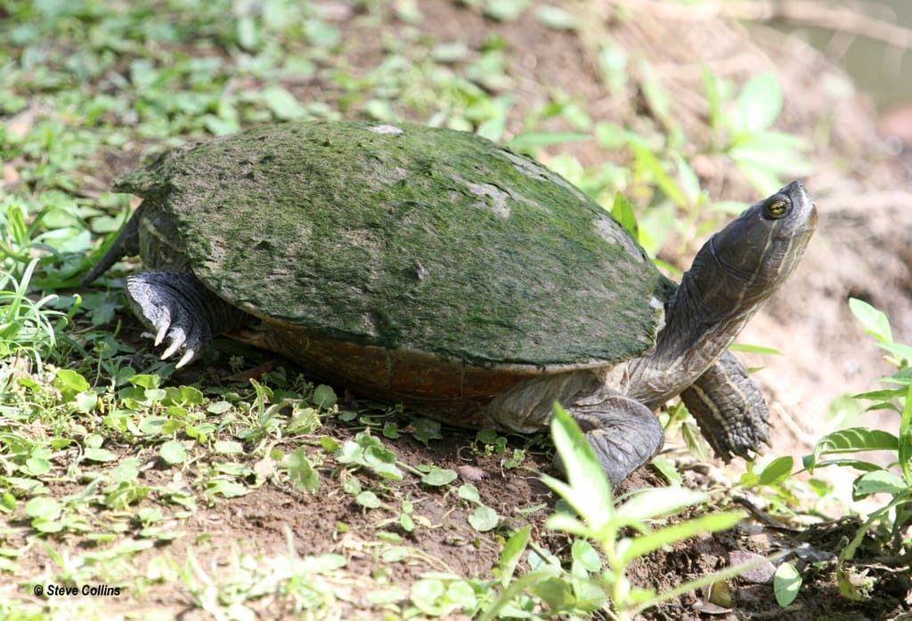Habitat destruction, pollution, and competition from invasive turtle species like the red-eared slider pose risks. Road kills and illegal pet trade also contribute to local declines.