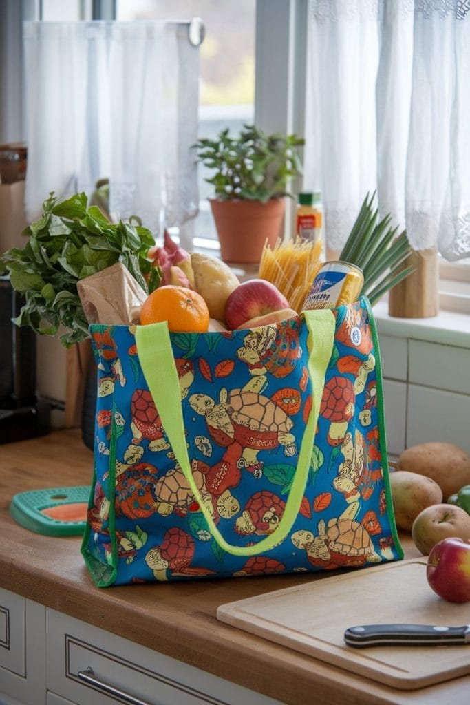 Eco-friendly and stylish, these turtle-themed reusable shopping bags are perfect for the environmentally conscious turtle lover. They fold up easily, making them convenient to carry anywhere and feature colorful turtle designs to add some personality to grocery shopping.