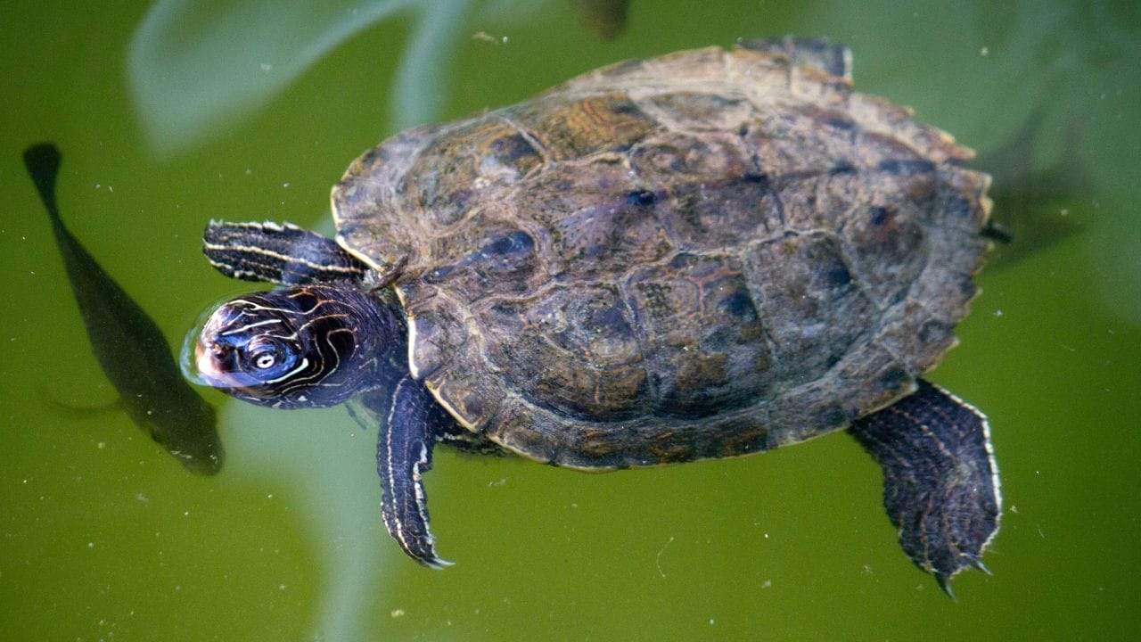 Map Turtles (Graptemys spp.): Map turtles are generally more focused on eating insects and crustaceans, posing less risk to koi. They do well in larger ponds with plenty of swimming space and basking areas.