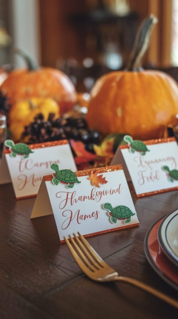 Creating turtle-themed place cards adds a personalized and fun touch to your Thanksgiving table. These simple crafts can make your guests smile and feel special.