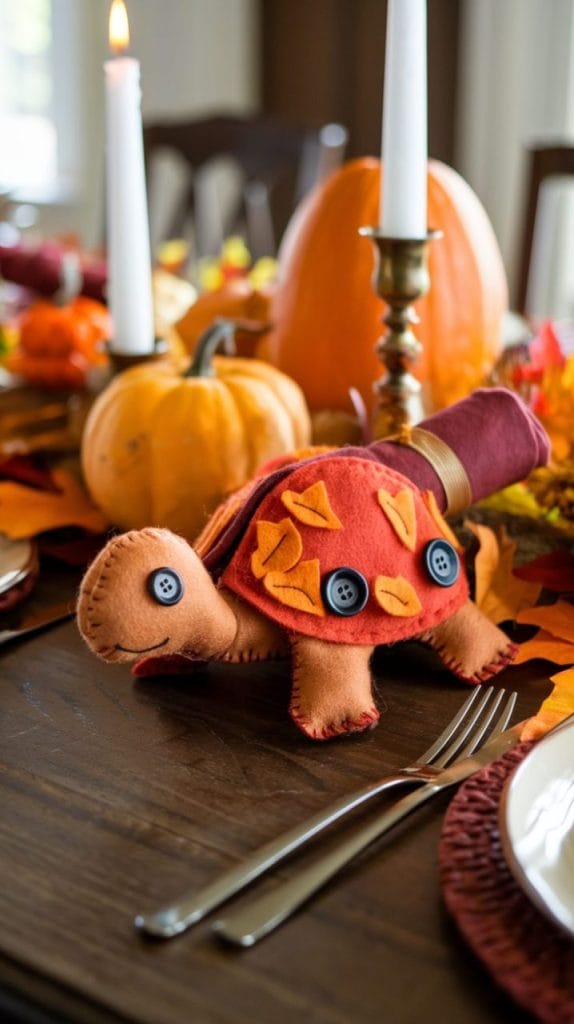 Place these charming tortoise napkin holders on each plate, adding a cute and nature-inspired touch to your Thanksgiving table.