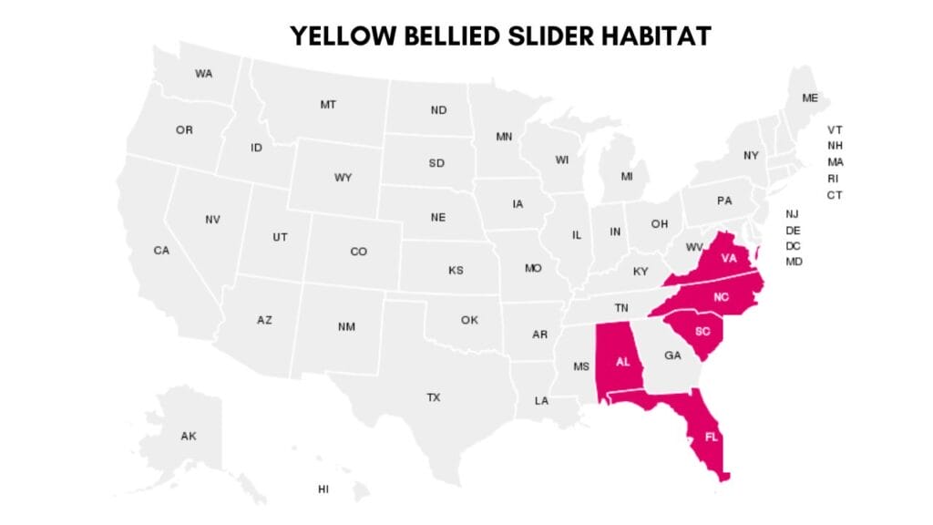 The yellow bellied turtles population is concentrated in the southeastern part of the United States. You will find this species in the following states,